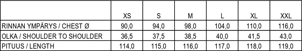 A long dress which is slender on the shoulders and widens to the hem.<br>The model is 177 cm tall and is wearing a size S with a length of 115 cm and a bust of 94 cm.